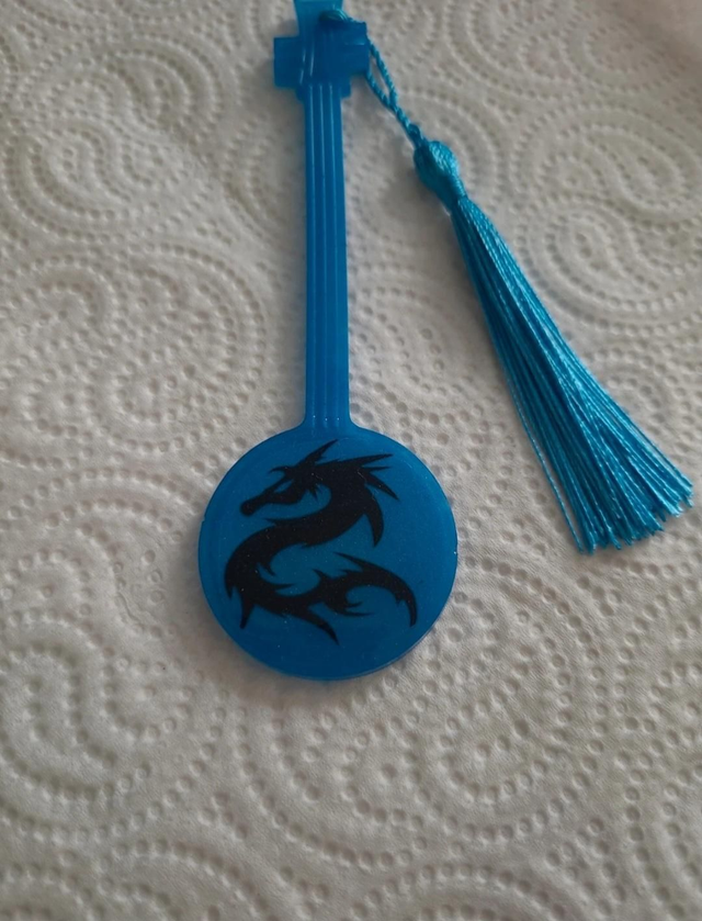 Joli Marque-pages bleu avec un Dragon Tribal noir