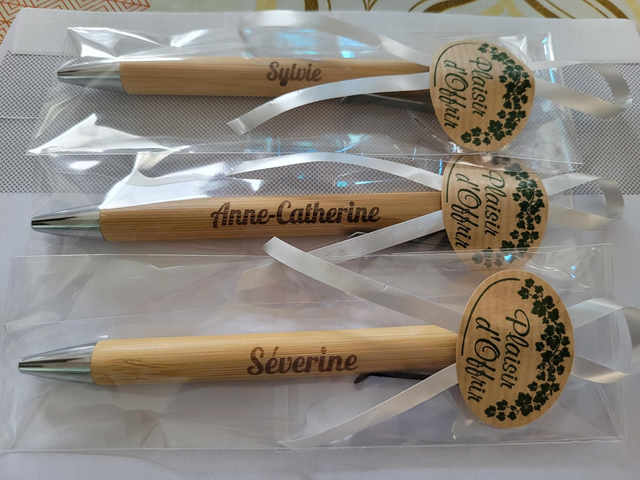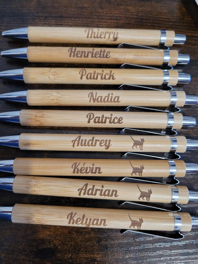 Stylo personnalisé sur demande à vendre à l'unité au prix de 4€ pour gravure un côté ou 5€ gravé sur les 2 côtés.