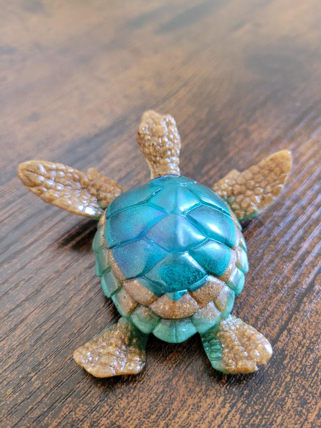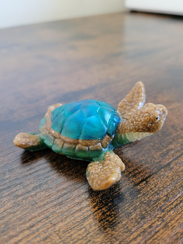 Jolie petite Tortue de couleur marron (c'est du sable à l'intérieur) et vert